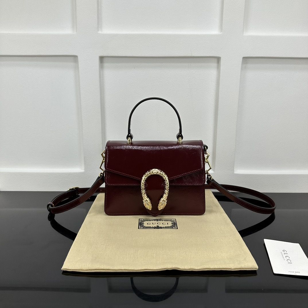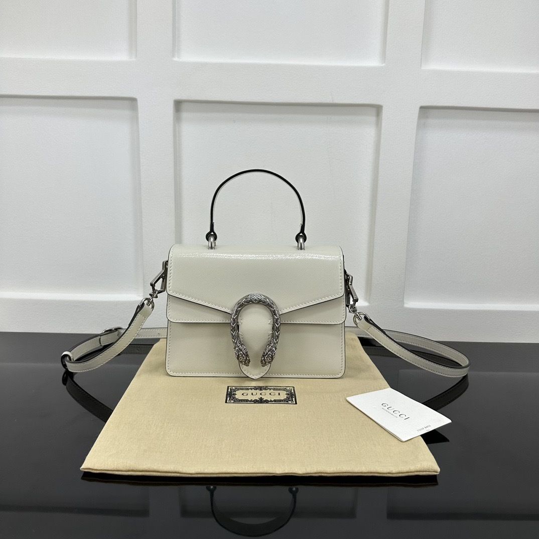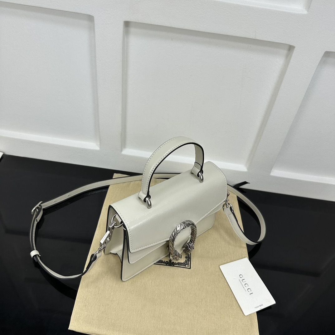 A modern evolution of a Gucci icon, the GG Dionysus Top Handle 799599 blends structured elegance with the collection’s unmistakable tiger head closure, offering a polished silhouette with contemporary sophistication.