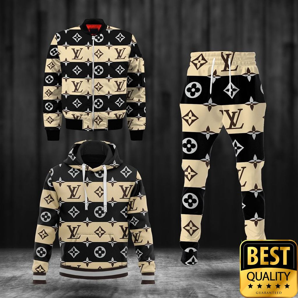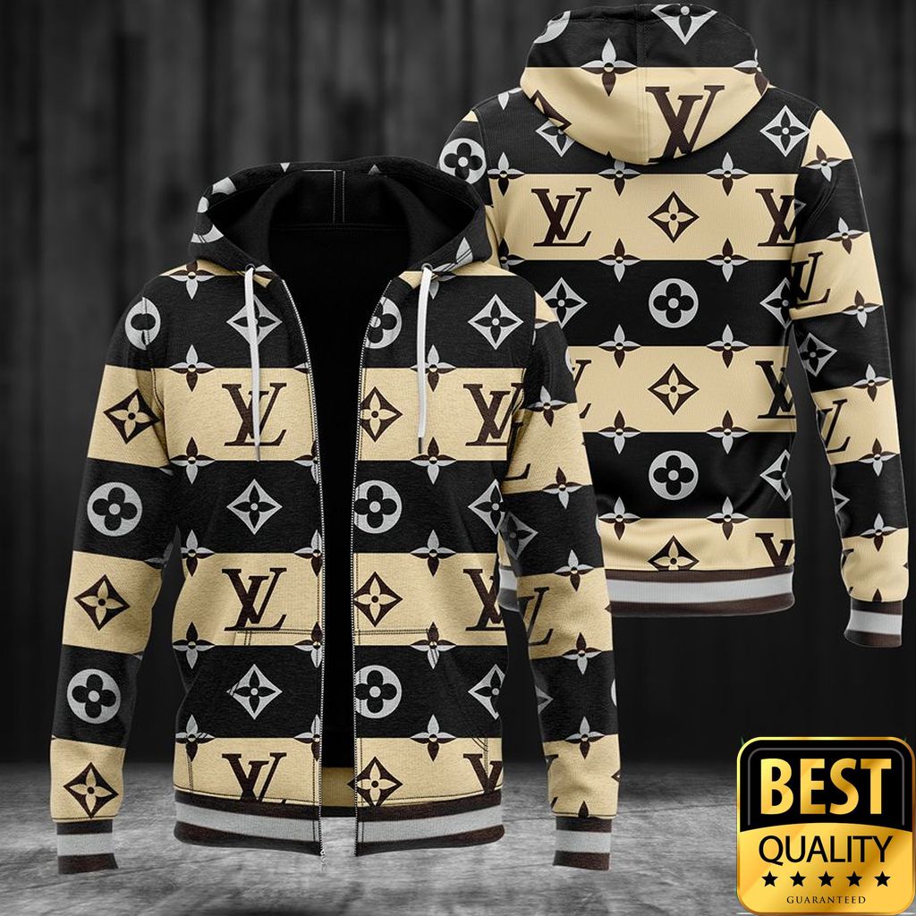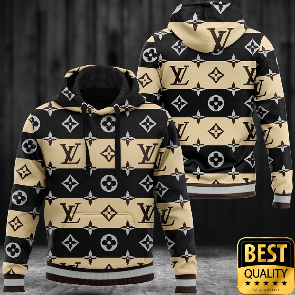Luxury Louis Vuitton Light Yellow And Black Interleaved Pattern 3D Shirt And Pants 170. Wrap yourself in luxury with Louis Vuitton Hoodie. Elevate your street style with iconic comfort.