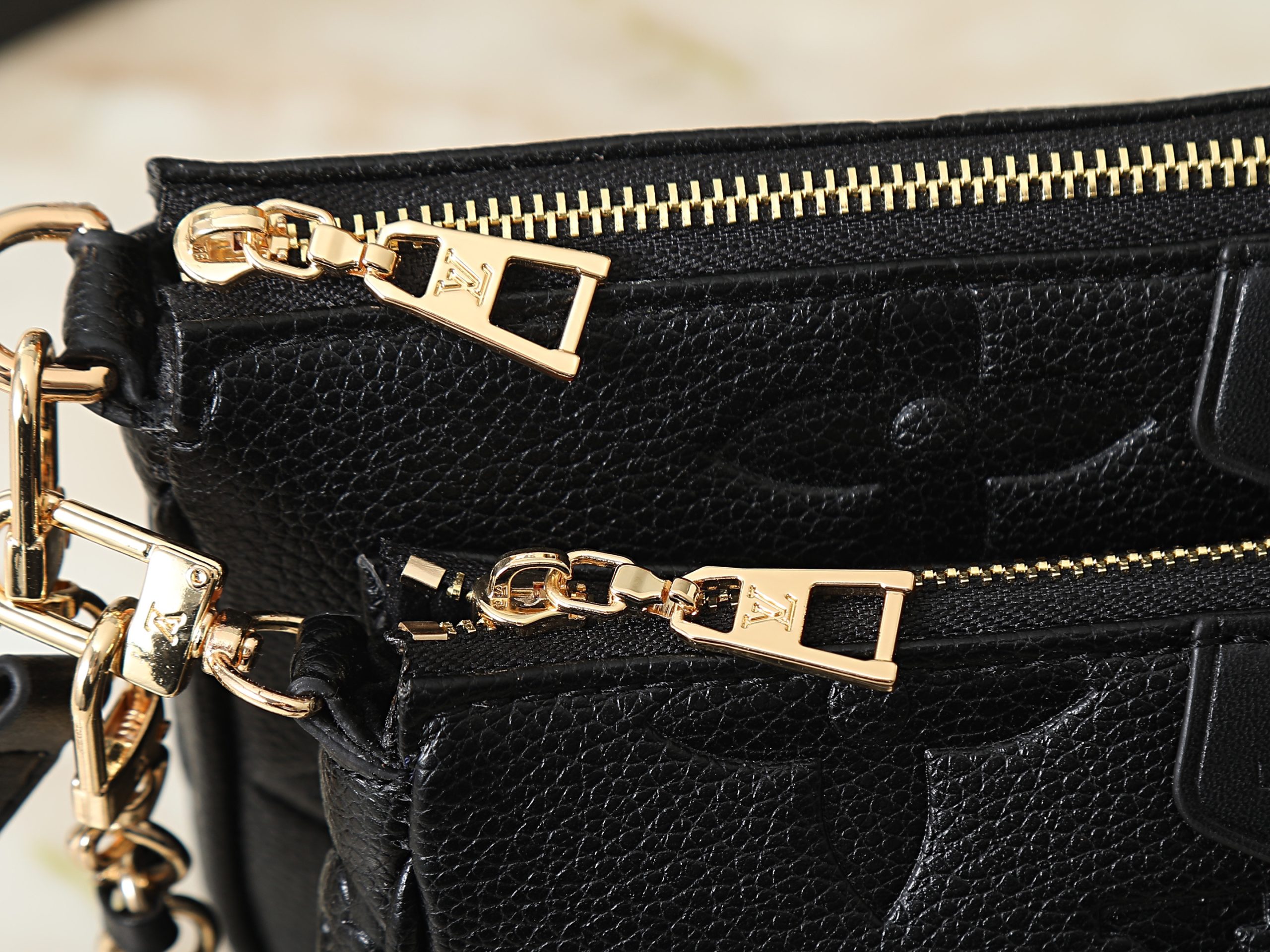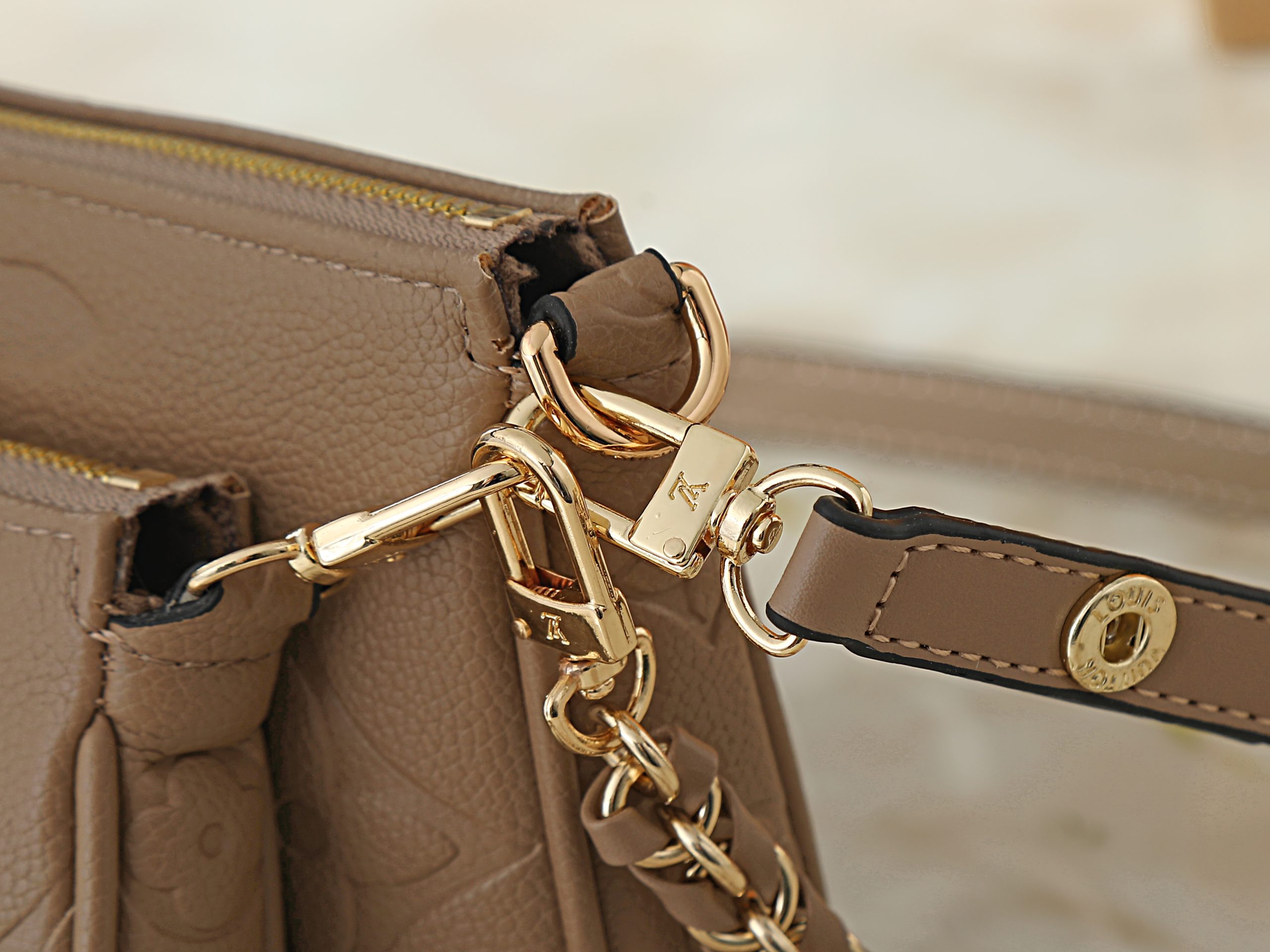- Material: Embossed monogram leather or signature monogram canvas variations