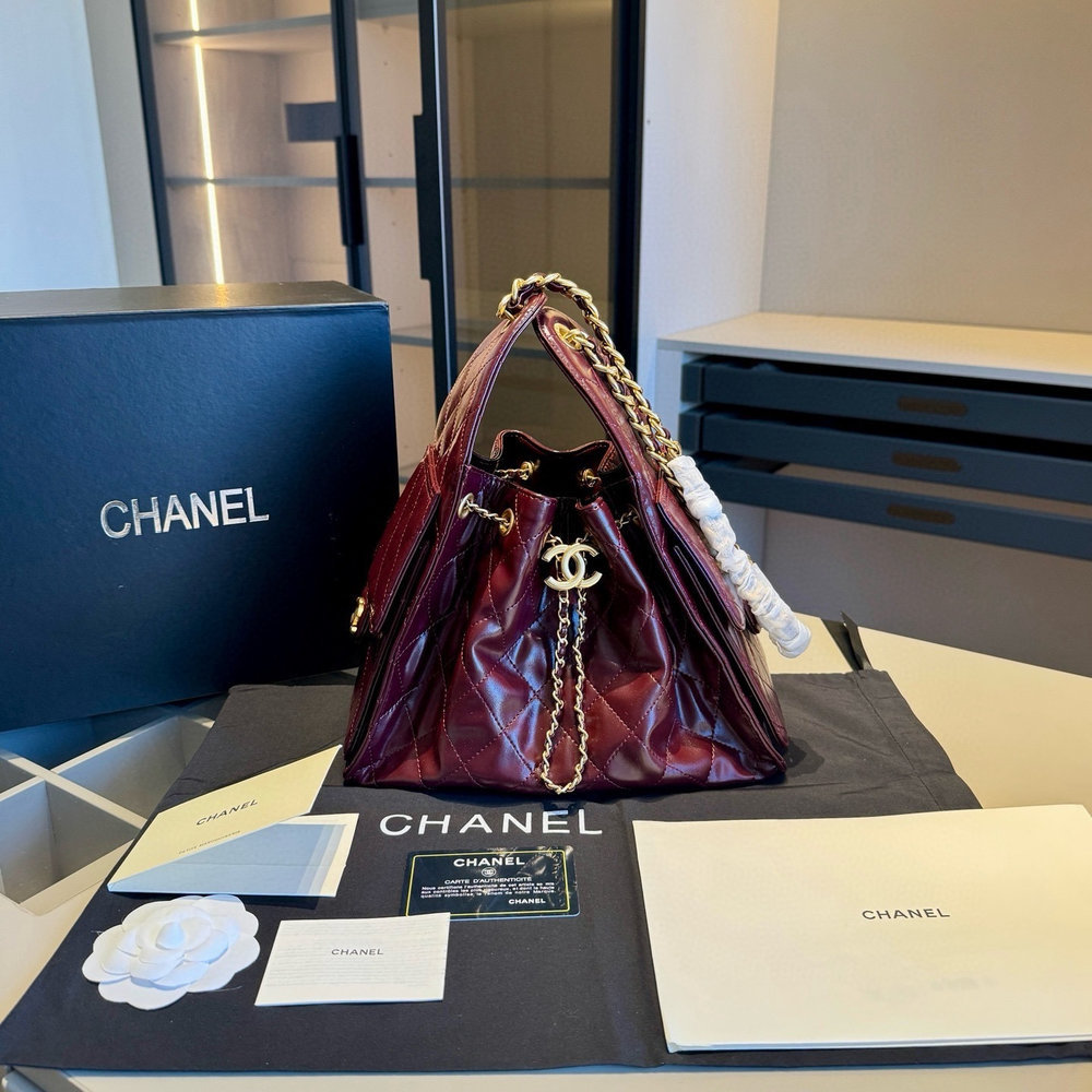 - Hardware: Gold-tone metal chain and CC logo