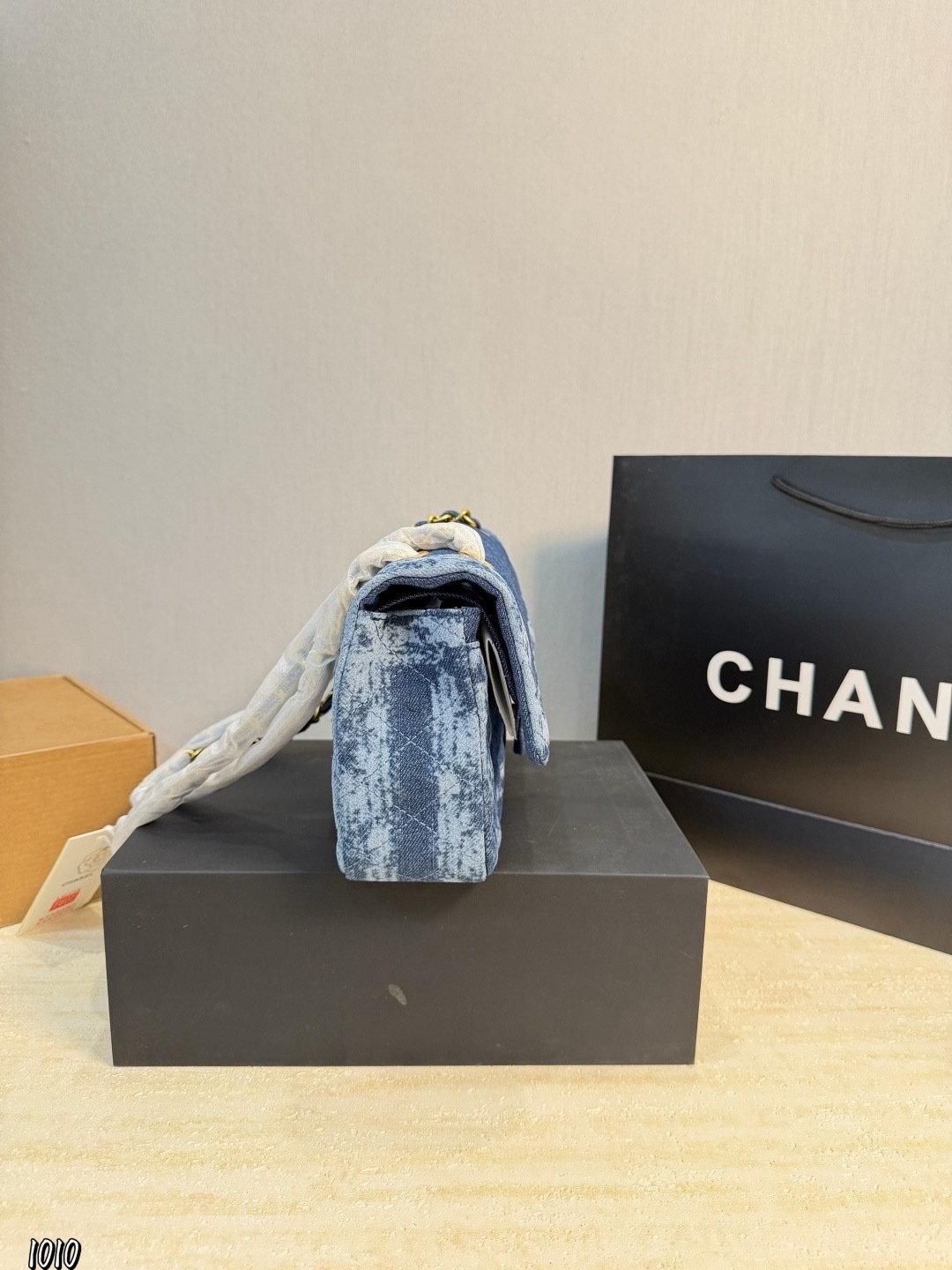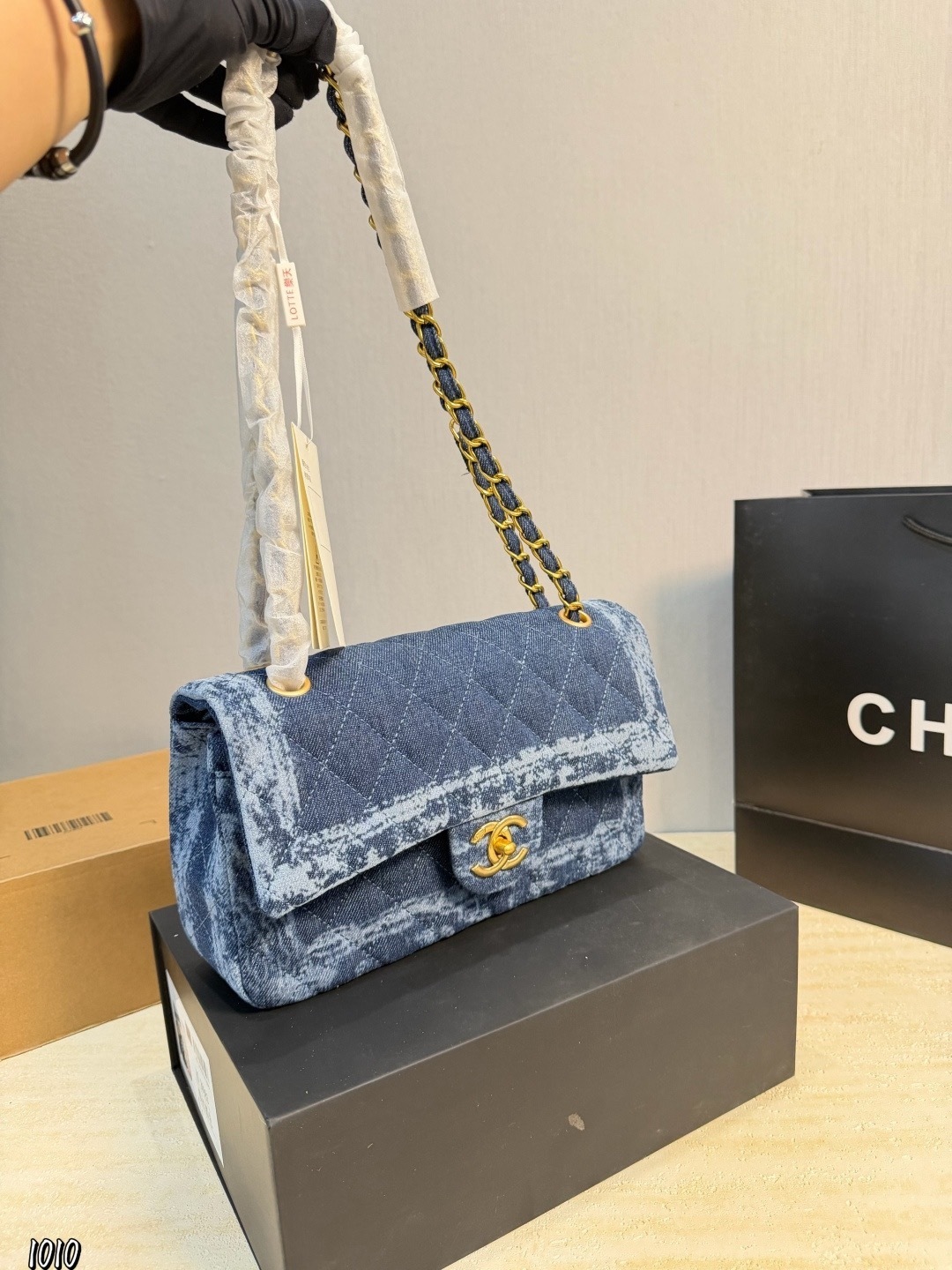 - Material: Quilted premium denim with leather trim
