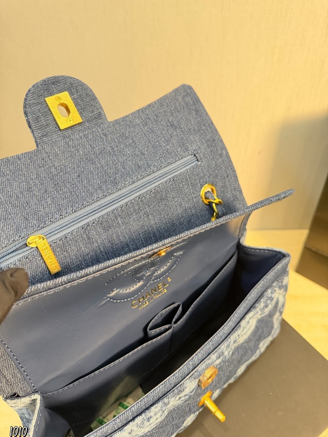 - Hardware: Gold-tone CC turn-lock fastening